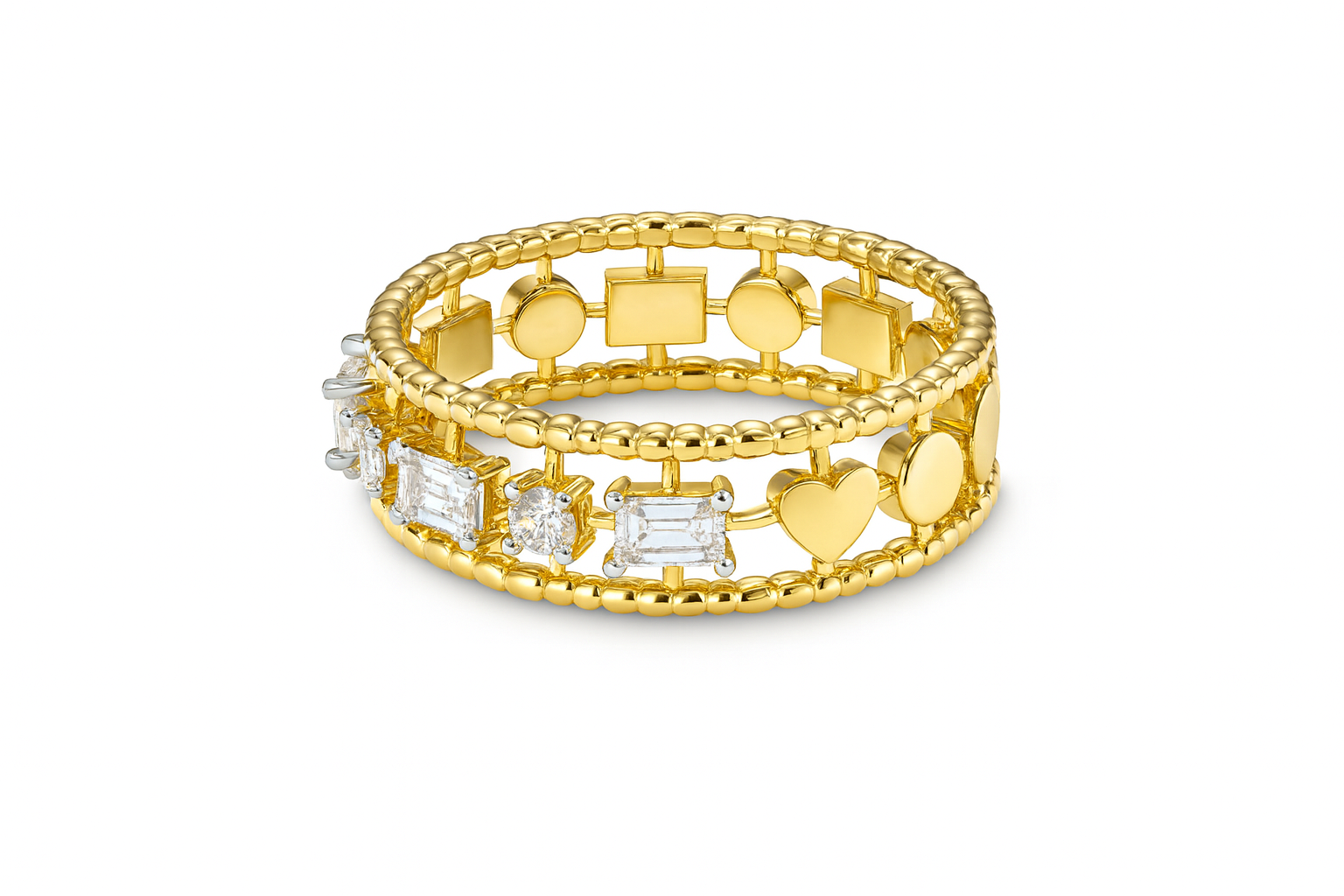 Get ready to turn heads with this 14kt Yellow Gold Fashion Band that's bursting with personality. Prong set baguette diamonds arranged in an east-west pattern dance alongside brilliant round diamonds for maximum sparkle and style. Layer it, mix it, match it—this ring is your new go-to for adding a touch of sparkle to any look, any day of the week.
