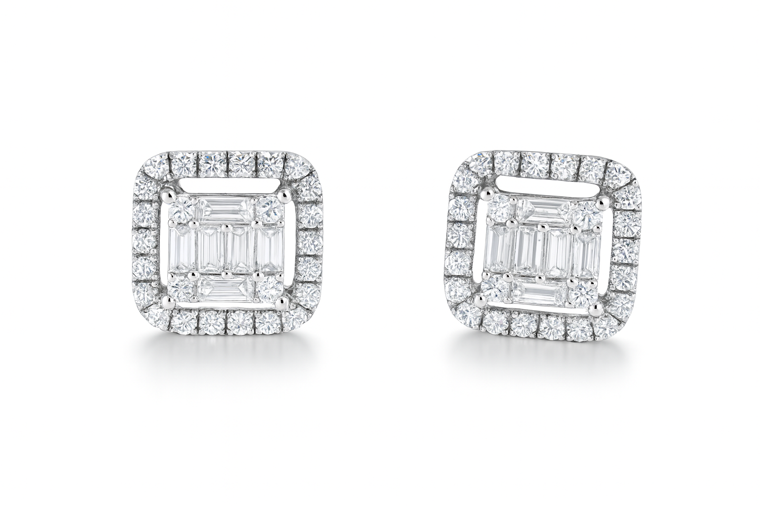 Brighten your day with these 14kt white gold ear studs, showcasing sparkling prong-set round brilliant cut diamonds alongside elegant straight baguettes. With approximately 1.02 carats of dazzling diamonds, these earrings add a sparkle that’s perfect for any occasion!