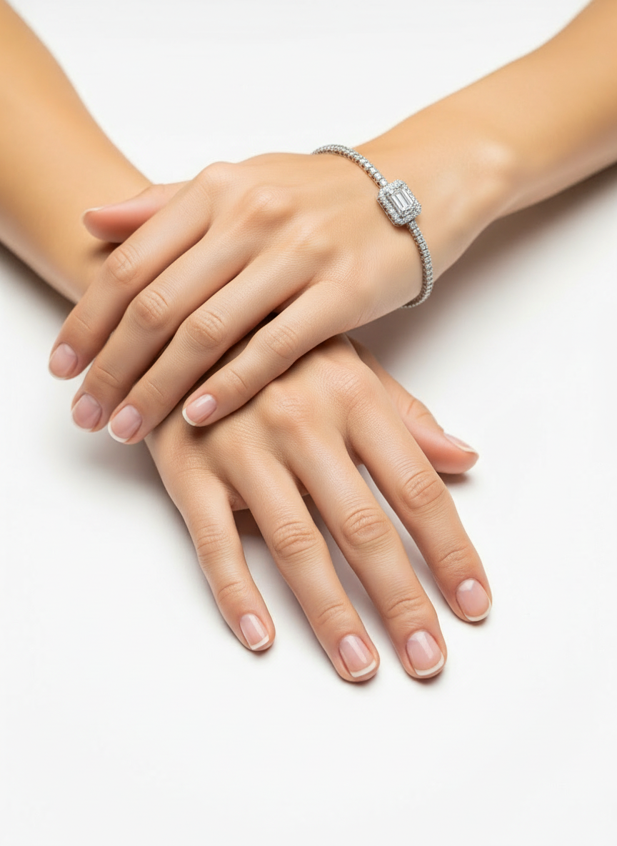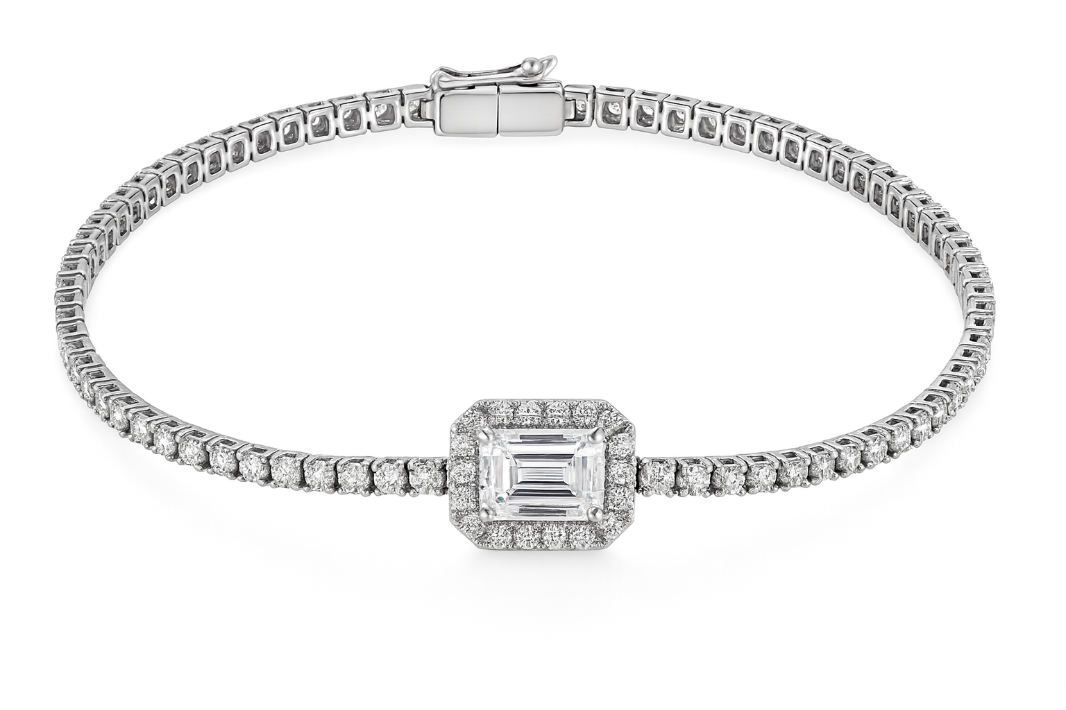 Meet your new wrist favorite: a 14kt white gold bracelet that knows how to make an entrance. At its heart sits a gorgeous 1.06 carat lab-grown emerald cut diamond. Surrounding it are 1.86 carats of prong set, natural round brilliant diamonds creating a beautiful interplay of geometric precision and radiant sparkle. Perfect for layering or standing solo, it's the kind of piece that makes every moment feel a little more special.
