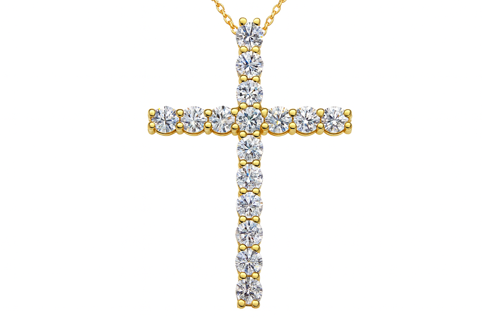 Add a sparkling touch to your style with this 14kt Yellow Gold Diamond Cross Pendant. Adorned with beautiful round brilliant cut diamonds, it catches the light with every move. Suspended from an 18" 14kt yellow gold cable chain, this pendant combines timeless elegance with a fun, radiant flair—perfect for day or night adventures!