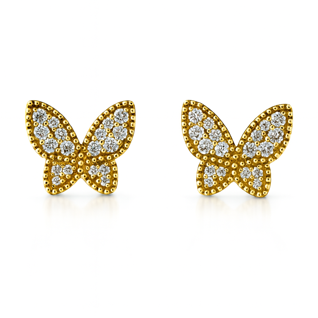Add a touch of sparkle and whimsy with these 14kt Yellow Gold Butterfly Stud Earrings. Featuring a total of .60 carats of round brilliant cut diamonds, these earrings catch the light beautifully for a joyful shimmer. Perfect for everyday wear or special occasions, their delicate butterfly design brings a cheerful charm to any outfit.
